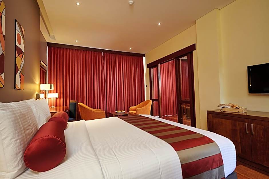 Featuring a balcony, air-conditioned room comes with a cable/satellite TV, personal safe and mini-bar. Bathroom has either a bathtub or shower.